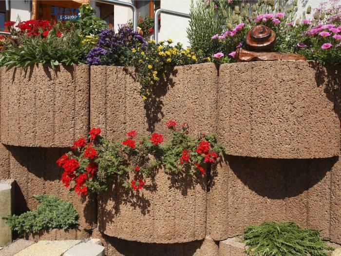 Pro vytvoření protihlukové zdi nebo pro zpevnění svahu je ideálním výrobkem BEST – VARIO. Tento prvek je na trhu již několik let a je stále velmi žádaný. Jeho tvar umožňuje kopírovat vlnitý svahový terén nebo zajímavě oddělit pozemek. Výhodou těchto prvků je možnost osazení květinami. Pro snadnější ozelenění máme v nabídce také plastová dna.