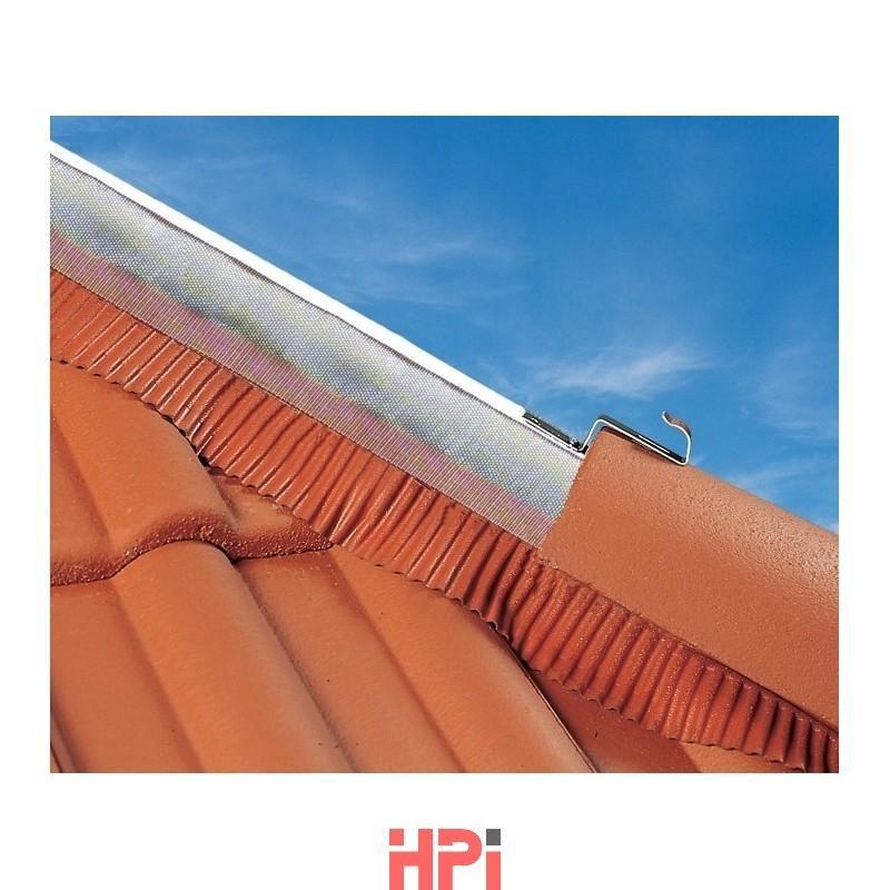 Větrací pás hřebene a nároží - šířka 310 mm pro intenzivní větrání se středovým výztužným páskem je vhodný pro betonové krytiny, Tondach - hřebenáč polodrážkový, hřebenáč č. 4, hřebenáč hladký aj. Délka role 5 m. Větrací průřez dle DIN 4108 145 cm2/m. Roztažnost 1,35.