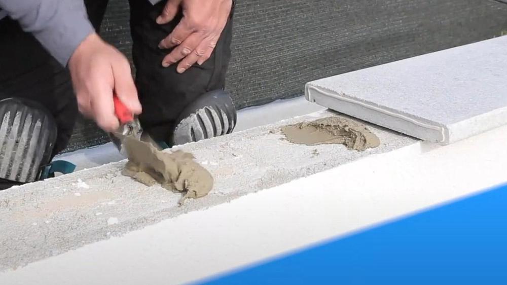 Speciální modifikovaná malta pro bodové a pasové lepení velkoformátové plošné betonové dlažby, bazénových lemů a schodových prvků