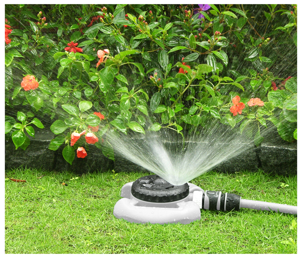 Zavlažovač se stabilní zálkadnou a tichým provozem. Ideální pro středně velké a nepravidelné trávníky. Plocha postřiku: 85 m²